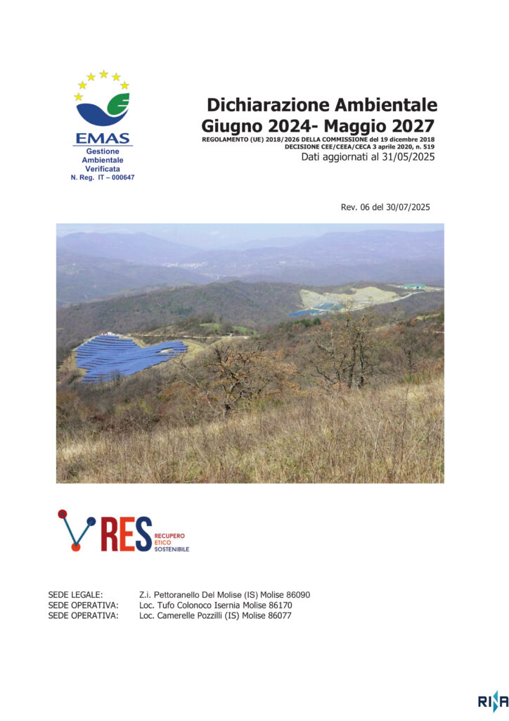 Certificazione di registrazione EMAS – Dichiarazione ambientale 2023-2025