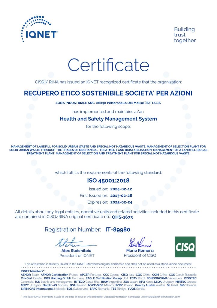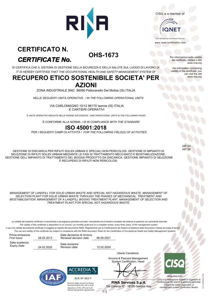 Certificato UNI EN ISO 45001:2018