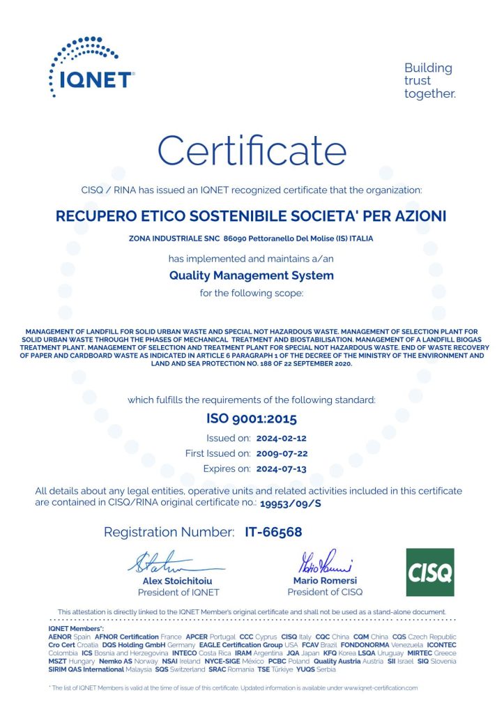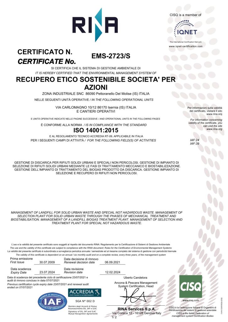 Certificato UNI EN ISO 14001:2015