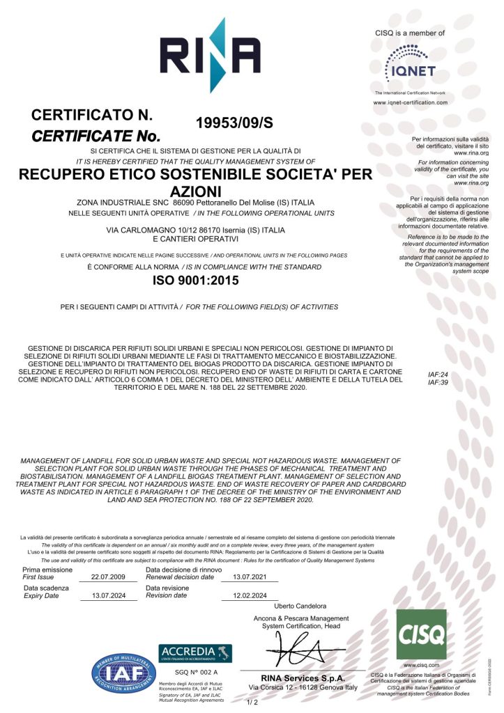 Certificazione del Sistema di Gestione della Qualità ai sensi della norma UNI EN ISO 9001:2015 (settore IAF24 e IAF39)