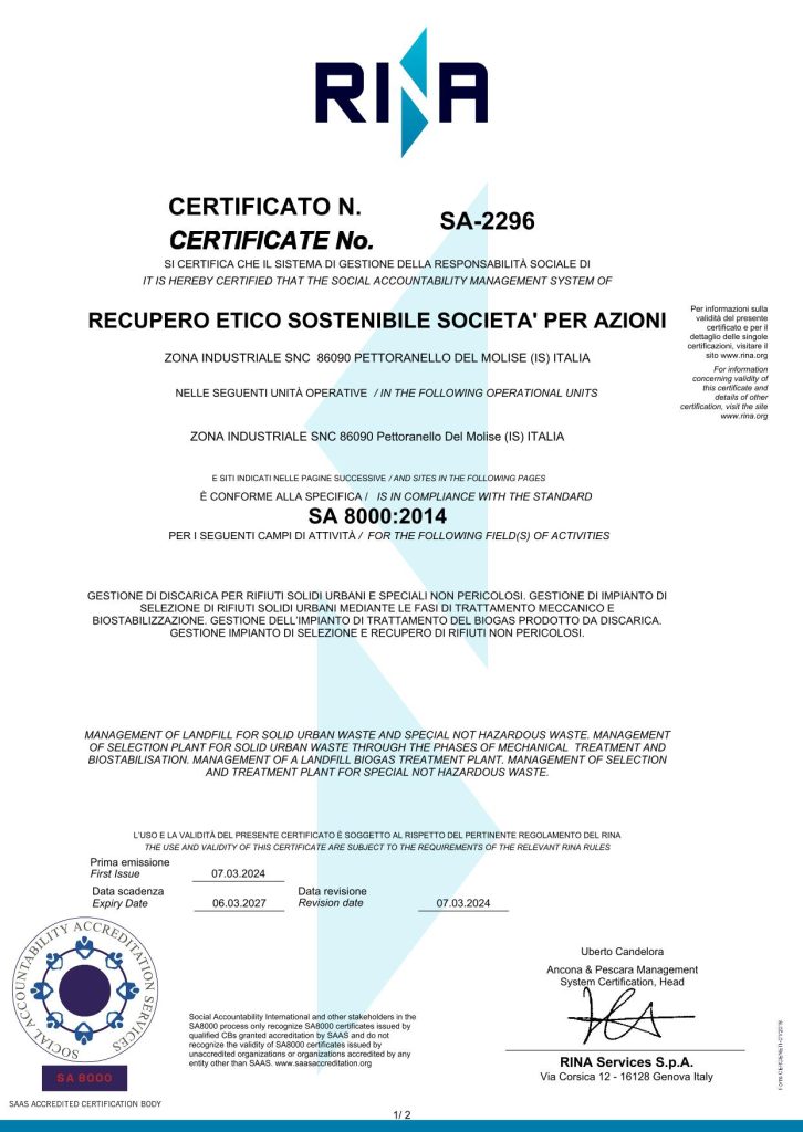 Certificato SA8000:2014
